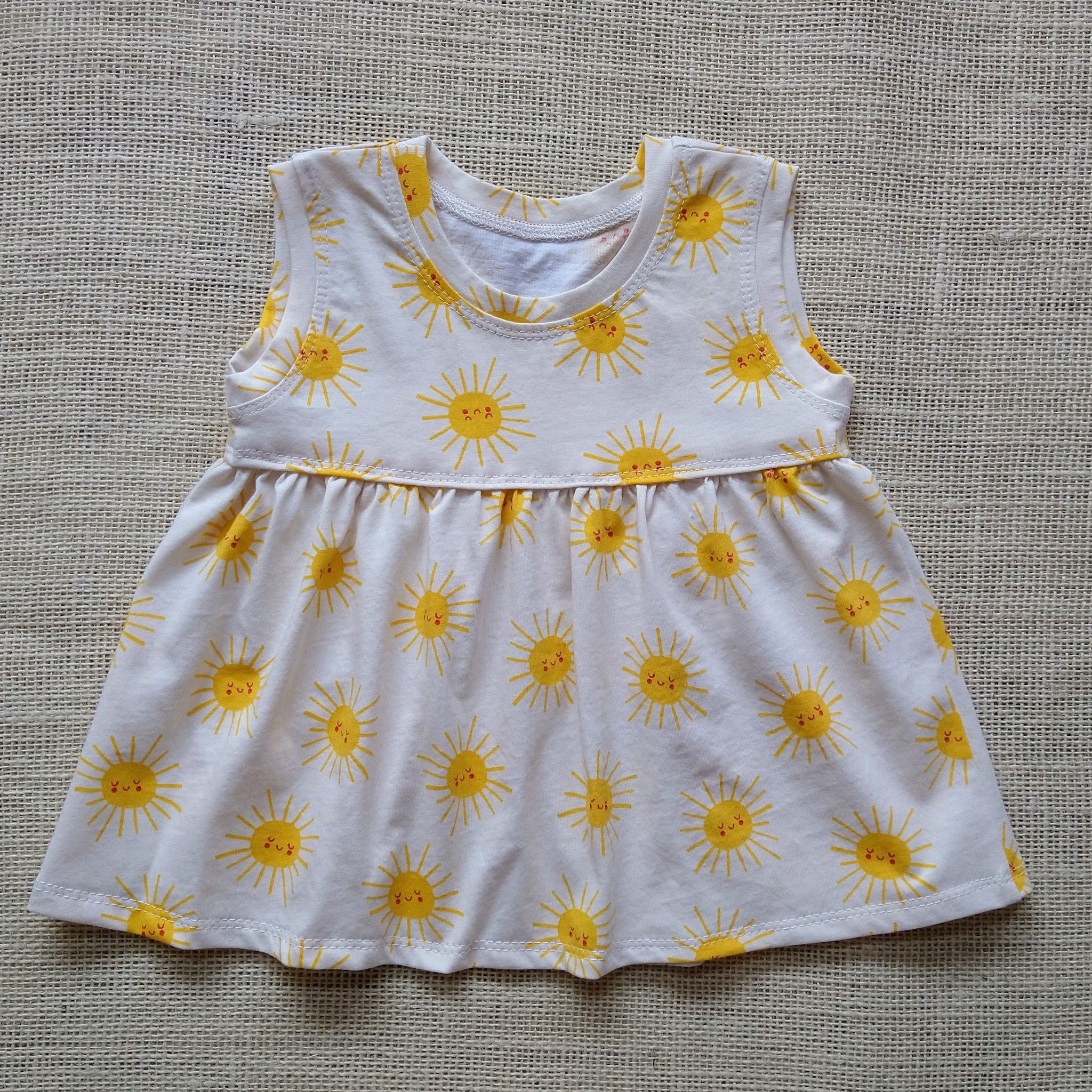 Your baby girl will look adorable in this super soft smiling sunshine print tunic.
