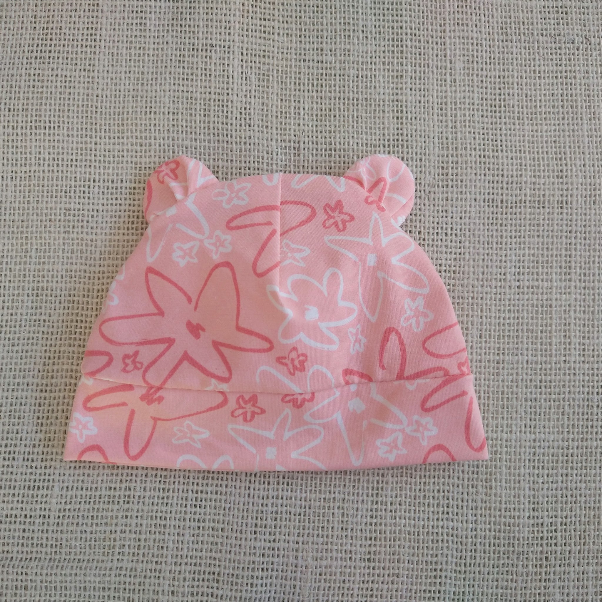 This cute hat for a baby girl is made of lightweight stretch cotton jersey knit. It features a soft hand and a four way stretch for added comfort and ease. Colors include white and shades of pink.